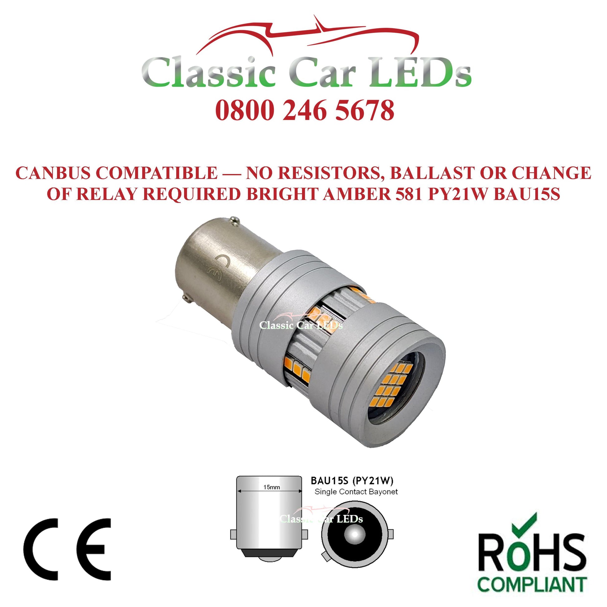 These LED are a simple, quick and direct replacement for your older style standard BAU15S bulbs. They need no resistors or change of relay to stop hyperflash and are also canbus compatible. They are truly plug and play. These are designed for modern cars with 12 volt systems to fool the electronic flasher systems and not therefore suitable for classics or vehicles with mechanical flasher relays.