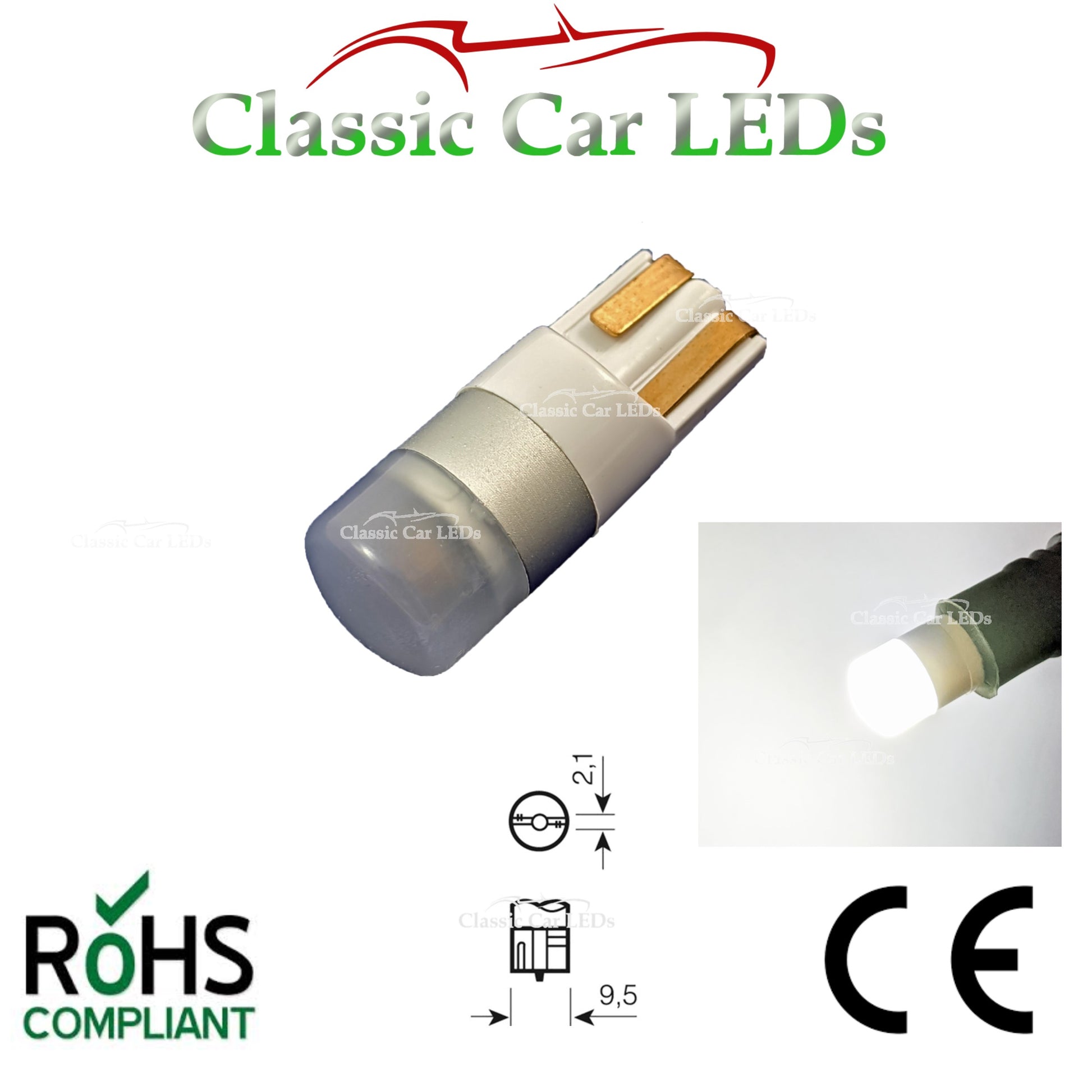 Suitable for many other classic cars or applications that have the standard T10 / GLB501 Wedge fitting.