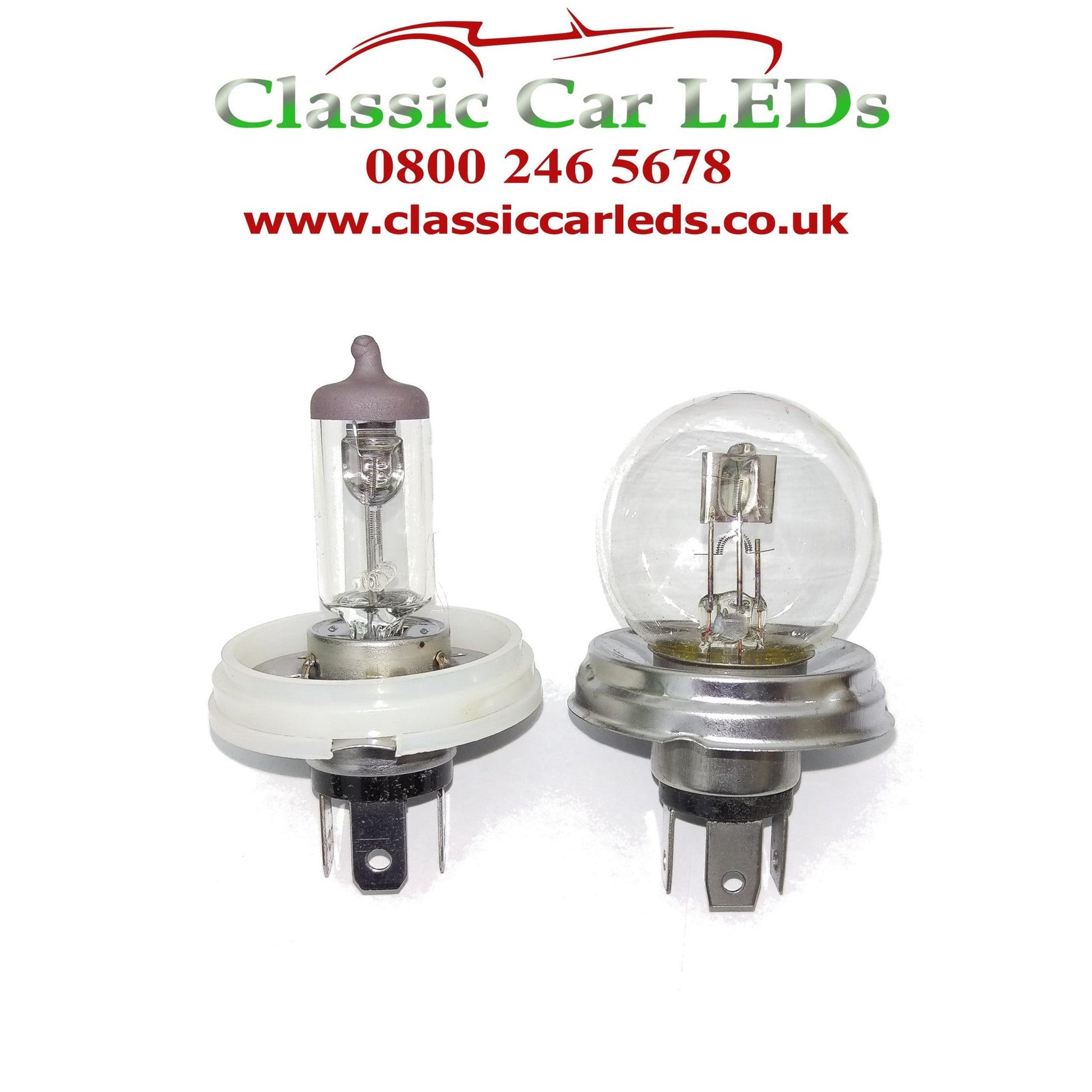 Purpose built adapters to enable the use of H4 P43T Halogen or LED Headlight bulbs in your existing P45T headlamp fittings.